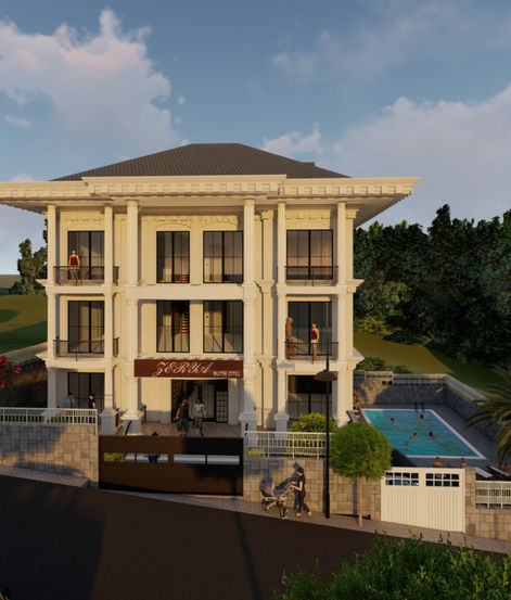 Şile, Balibey mahallesinde bulunan butik otelin mimari ruhsat ve iç mekan 3d çalışmalarını tamamlayıp, teslim ettik.